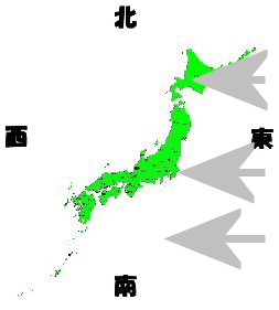 | ボクの予想は、天気は東からやってくるだと思う。 朝は東からやってくるんだ、だって、太陽は東からのぼるでしょ。 だから、天気も東からやってくるんだと思うな。 ![]() 他の予想も見てみよう。 西から 東から 北から 南から 次へ進む ![]() |