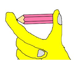 えんぴつのとがった方を人差し指にし、親指をけずってない方にして持ち、