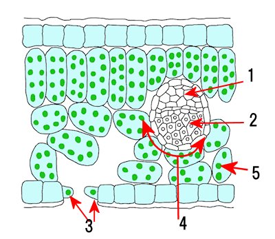 維管束の中で葉の表面側にある図の1の管(くだ)はなんといいますか。