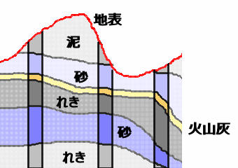 ボーリングした地点がわかりやすい用に柱状図にしました。