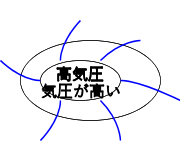 高気圧は、地上では[ ]へ向かって風が吹く。