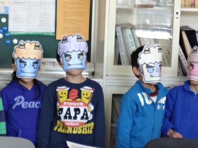 職員室には、先生がそろっているときと、お昼に豆まきに来た。
