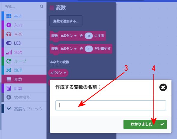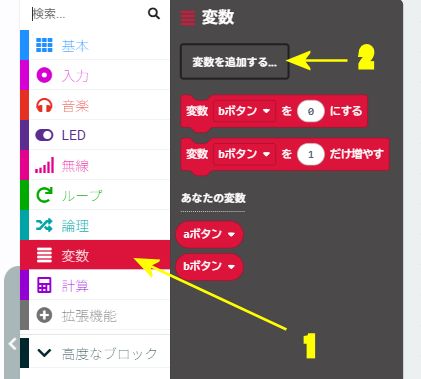次に矢印2の「変数を追加(ついか)する」をおします。