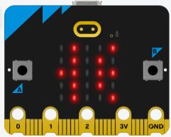もう最初のプログラムが書かれています右側のマイクロビットの三角マークを押すとハートが表示されます