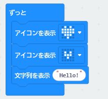 [基本]の中に、「アイコンを表示」というブロックがありますからそれを引き出して