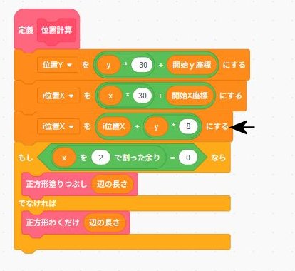 そして位置計算(いちけいさん)という関数(かんすう)をつくっておきます。