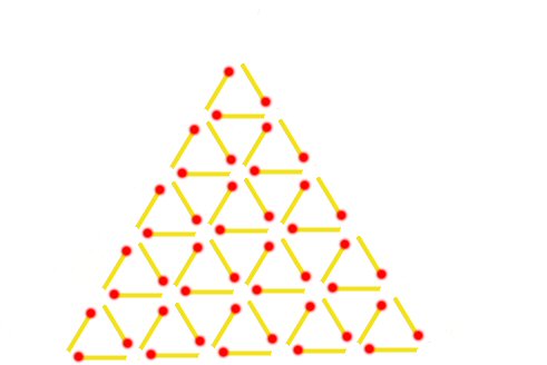 マッチ棒で図のように並べて三角形の山を作っていきます