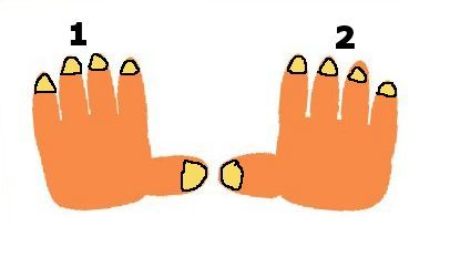 手のつめの見える方を見ています。