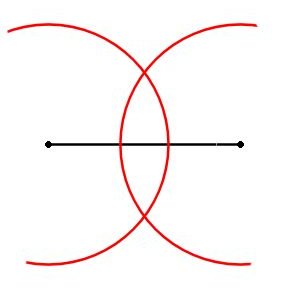 2つ円を書くと、だいぶ垂直二等分線に近づきます。