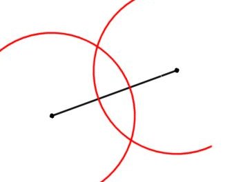 2つ円を書くと、だいぶ垂直二等分線に近づきます。