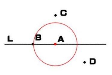 線上の点Aから、線分Lに垂線を書きなさい。