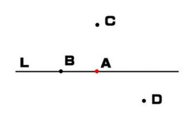 線上の点Aから、線分Lに垂線を書きなさい。
