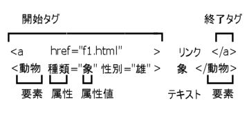 「a(アンカー)」 などの、要素の次に書かれたものを属性と言います。