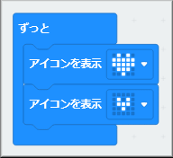 ずっとの中へ、【アイコンを表示♥】ブロックを入れる。