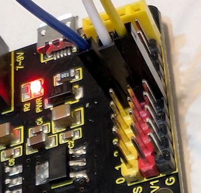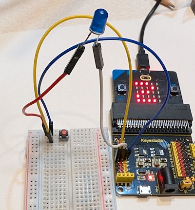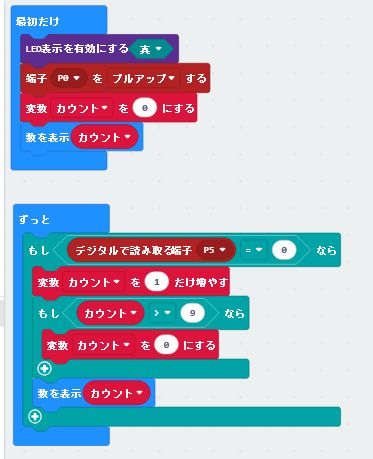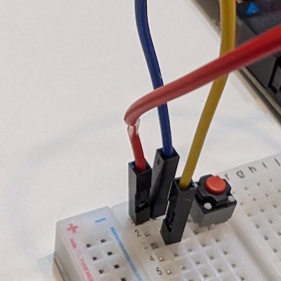 →先のプログラム(外部ボタンを検知する)へ途中(とりゅう)までの配線(はいせん)は前のプログラムと同じです。