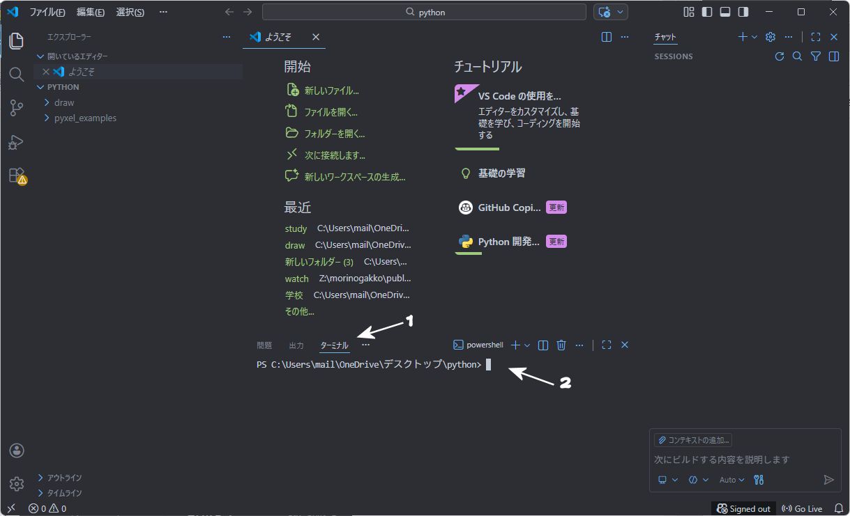 python(ぱいそん) というフォルダを作ります。