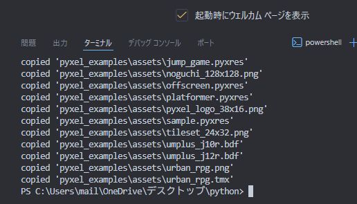 2へ、 pyxel copy_examples と書いて エンターを押すと