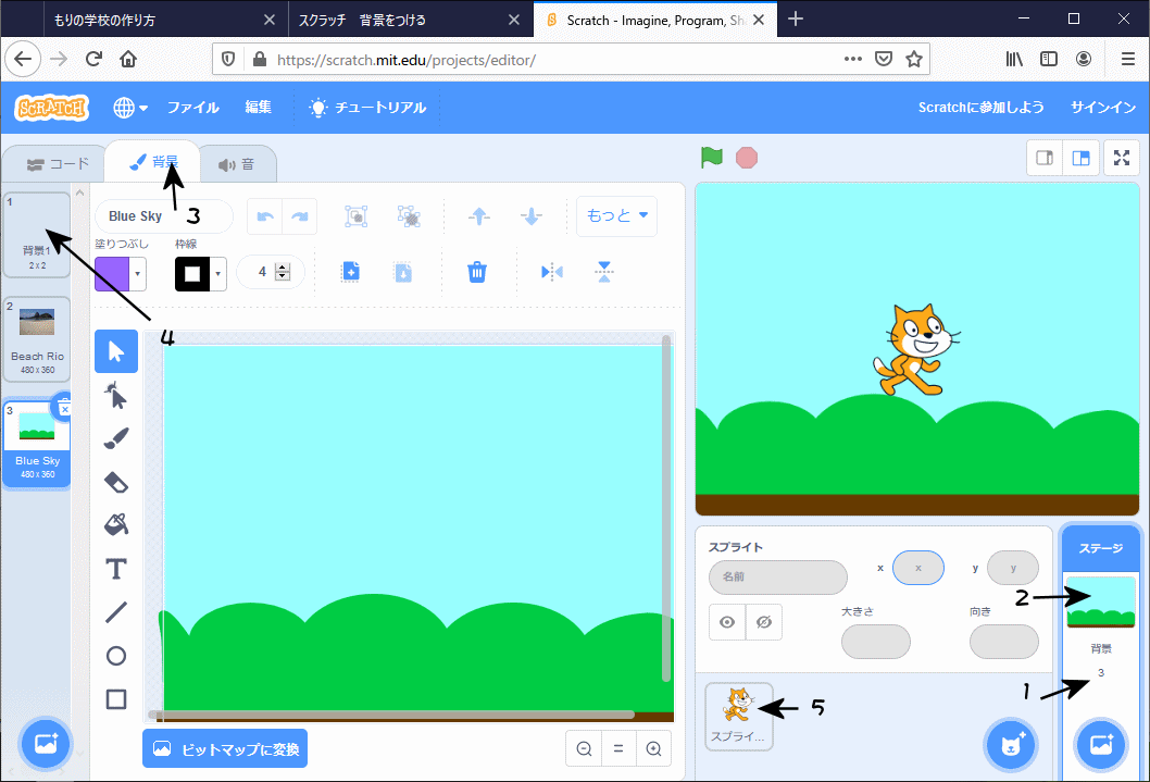 背景をいくつか選ぶと、右下(1)の数字が変わります。ここでは3となっています。