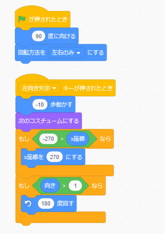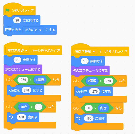 【回転方向を左右のみにする】を【旗が押されたとき】につけくわえて
