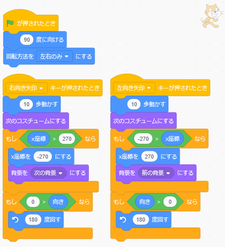 スプライトが矢印キーで左右に動くようになりました。