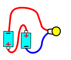 電池と電球がつないであります。