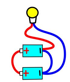 電池と電球がつないであります。