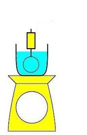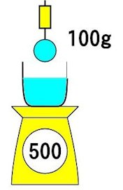 それに、水の入った袋にバネばかりをつけ、水の中に入れました。