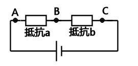 電源に同じ大きさの抵抗aと抵抗bを直列につなぎました。