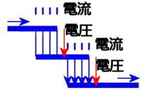 電圧の赤い線は全体の電圧を、上段とした段で分けるようになります。
