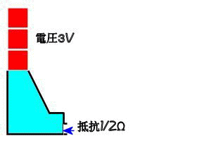 電圧3Vで、抵抗2Ωの時流れる電流は何アンペアですか。