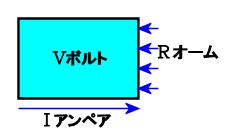 電圧Vで、抵抗Rのとき流れる電流 Iアンペアを求める式を書きなさい。