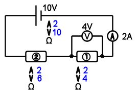 6Ω+4Ω=10Ω のように、直列の抵抗値は足し算できます。