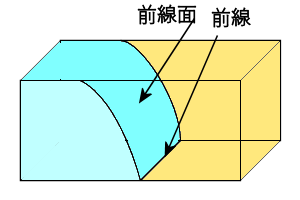 前線に続く、上空に2つの気団が接する面を前線面というのです。