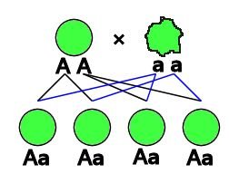 例えばエンドウの純系の丸い豆と、劣勢のしわのある豆を交配させると