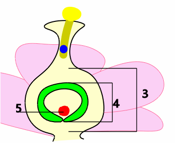 花粉管は3の子房に向かって伸び、精細胞は[4]の中の[5]まで達します。
