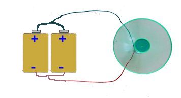 乾電池を2つ図のようにつなげると、モーターの回る速さはどうなる。