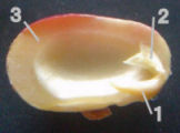 豆の中に折りたたまれているしわくちゃな部分(2)は何になる。