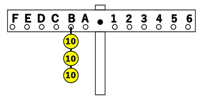実験器具の2番目の穴Bに30gのおもりが下がっています。