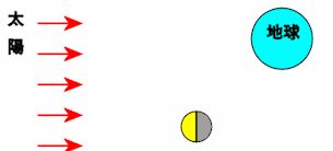 図のような位置に月があったとき、月の形はどんな形に見えますか。