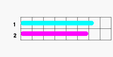 重ねてみると、どちらが長いか分かります。