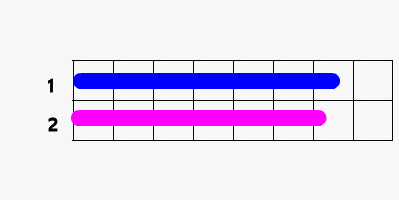 重ねてみると、どちらが長いか分かります。