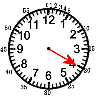 文字ばんの1が5分。それなら4は。