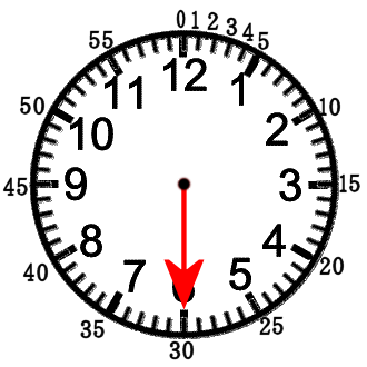 文字ばんの1が5分。それなら6は。