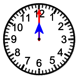 お寺のかねのなる時間は 12時0分です。お寺のかねのなる時間がきちんとはじまった。次の問題へ進む