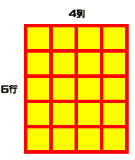 横5行、たて4列にくぎってあるはこ中に、わくはみんなで何こありますか。