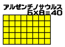 □=5×8を計算して、アルゼンチノサウルスの大きさを求めましょう。チラノサウルスの大きさは5mです。