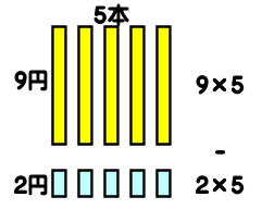 クマ君は 9円のえんぴつを 5本かいました。