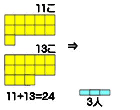 クッキー1本を13こクッキーすると 11+13=24こです。