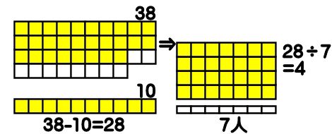 式は、(38-10)÷7 となります。