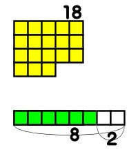 18まいのおりがみを同じ枚数ずつわけます。